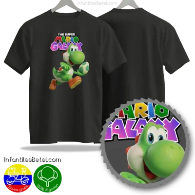 Camiseta negra de Yoshi con Mario Bros Galaxy
