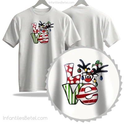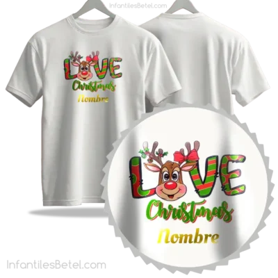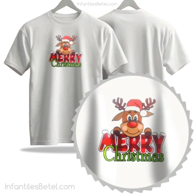 Camiseta Reno con mensaje de merry christmas BLANCA