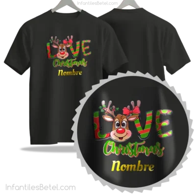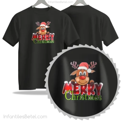 Camiseta Reno con mensaje de merry christmas NEGRA