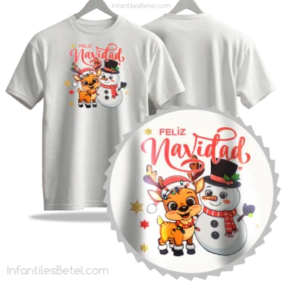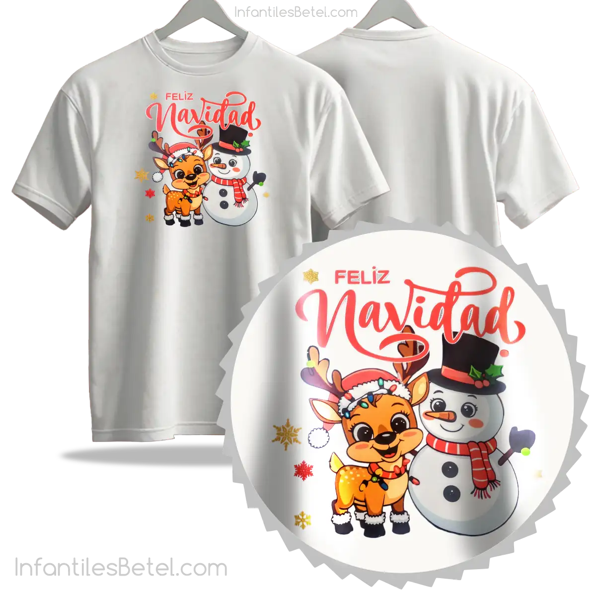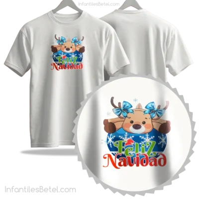 Camiseta Reno con mensaje de feliz navidad BLANCA