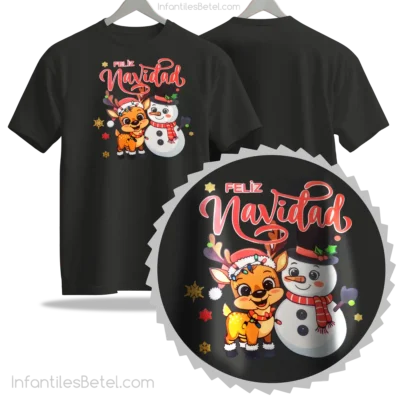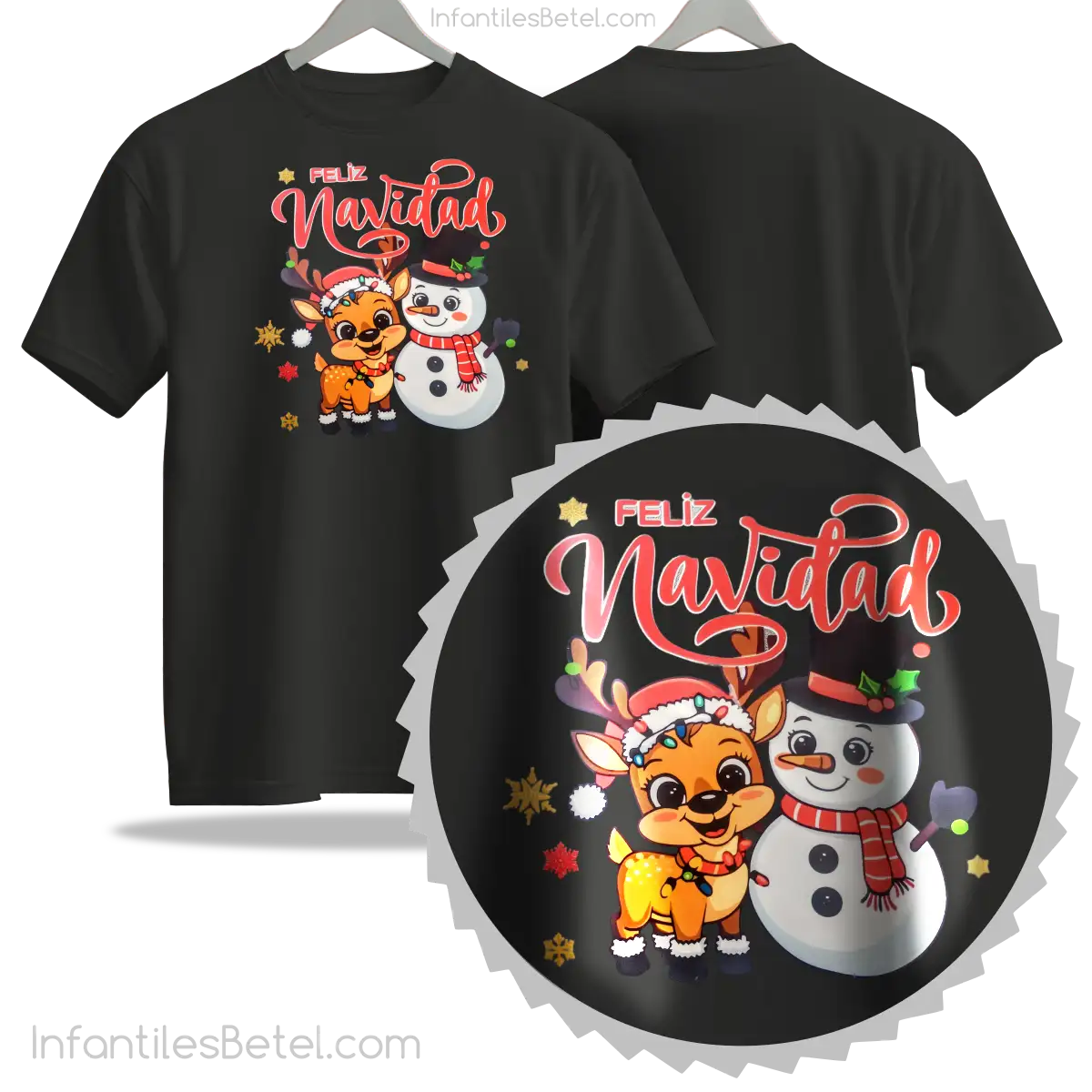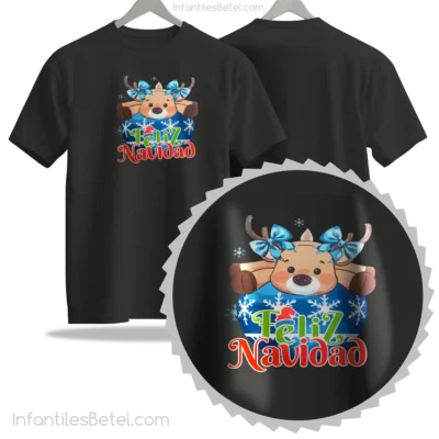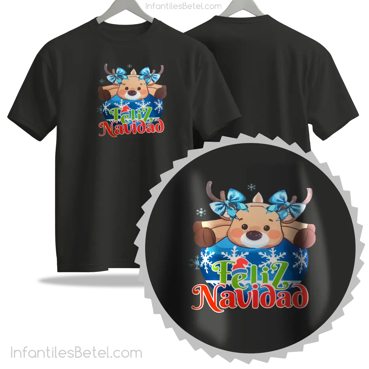 Camiseta Reno con mensaje de feliz navidad NEGRA