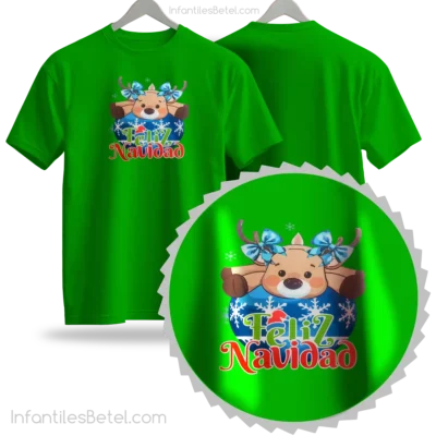 Camiseta Reno con mensaje de feliz navidad VERDE