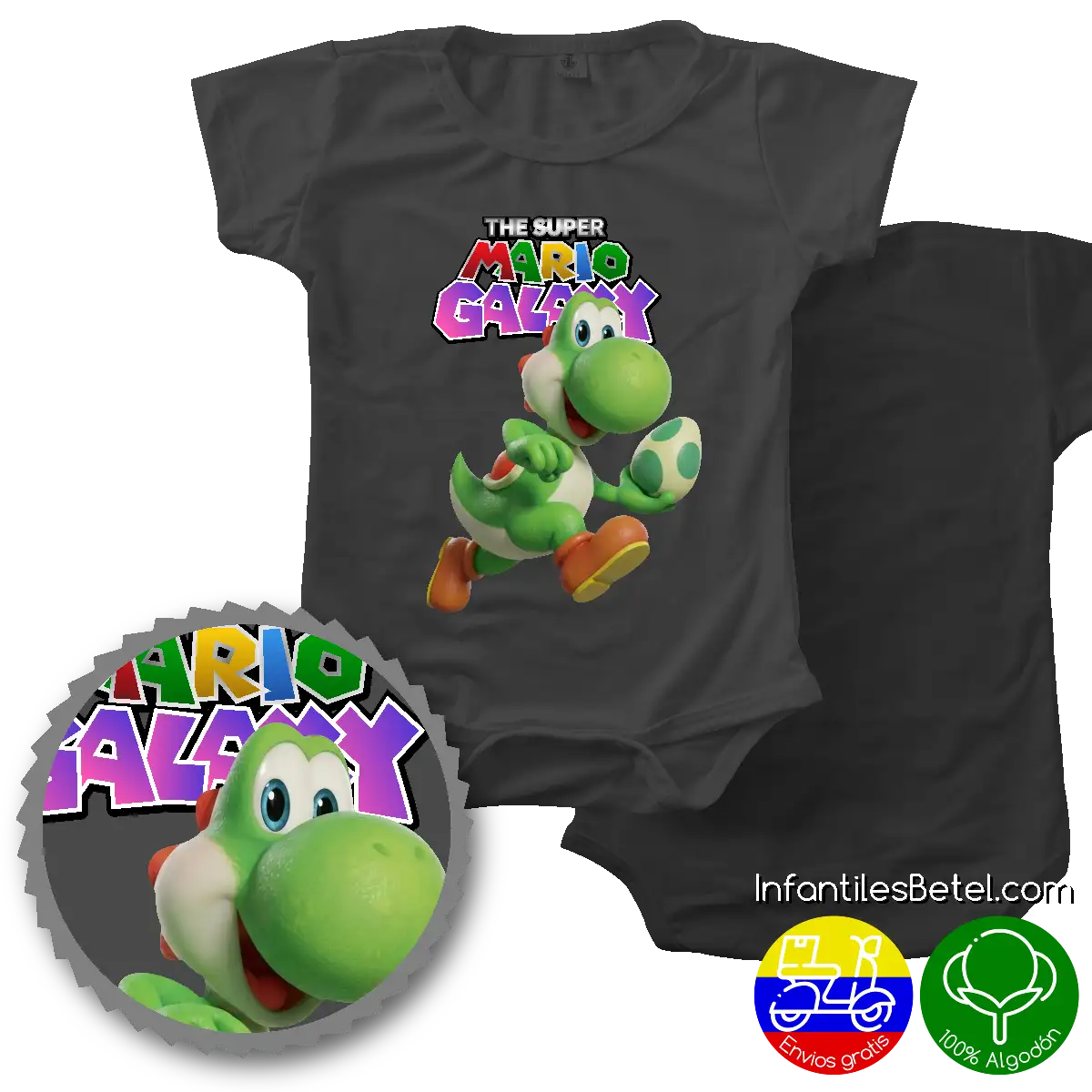 Etiquetas: algodon, babyshower, bebes, bodys, manga corta, Mario Bros, negro, niña, niño, Personalizado