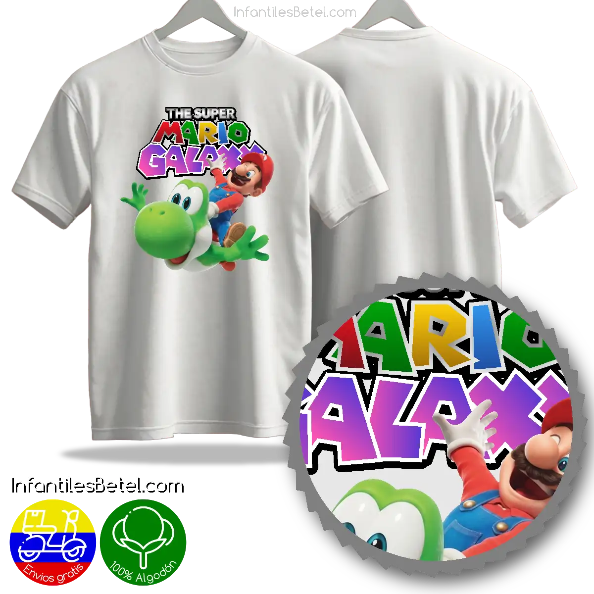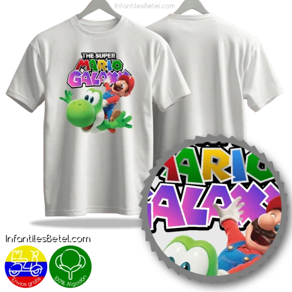 Camiseta blanca de Yoshi con Mario Bros Galaxy