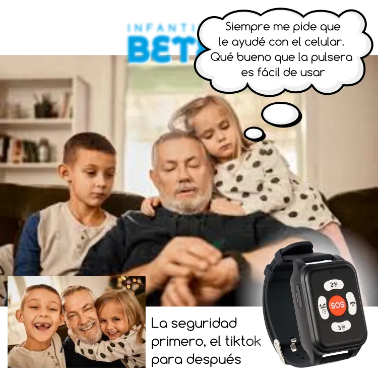 🆘 Cuenta con botones grandes de SOS y llamada a familiares.