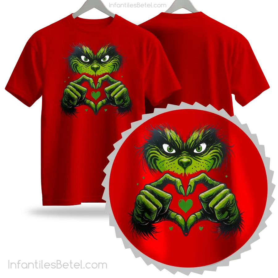 Etiquetas: cuello redondo, Grinch, manga corta, Navidad, Personalizado, rojo