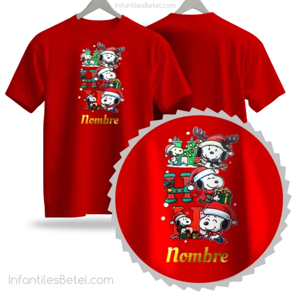 Etiquetas: cuello redondo, manga corta, Mascotas, Navidad, Personalizado, rojo, snoopy