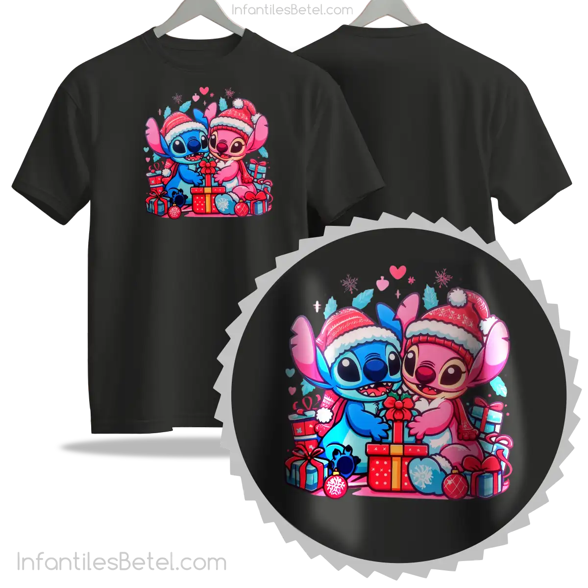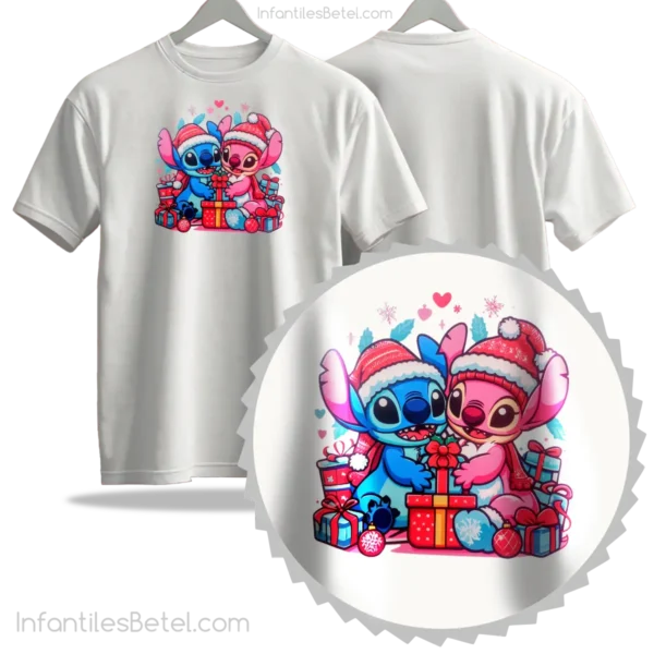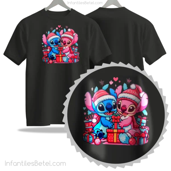 Camiseta navideña de stitch con su novia BLACK