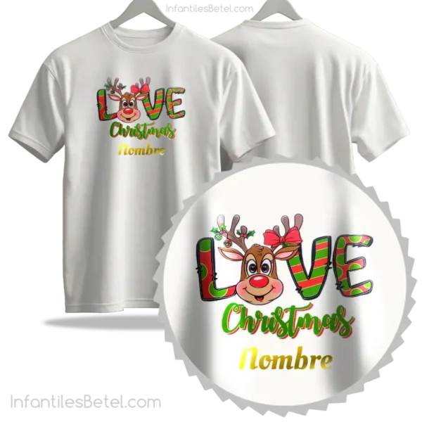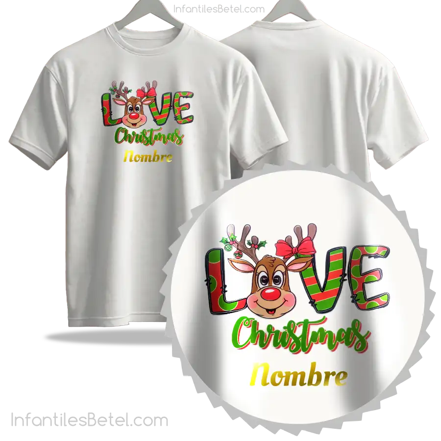 Etiquetas: algodon, blanca, blanco, cuello redondo, manga corta, Navidad, Personalizado, Reno
