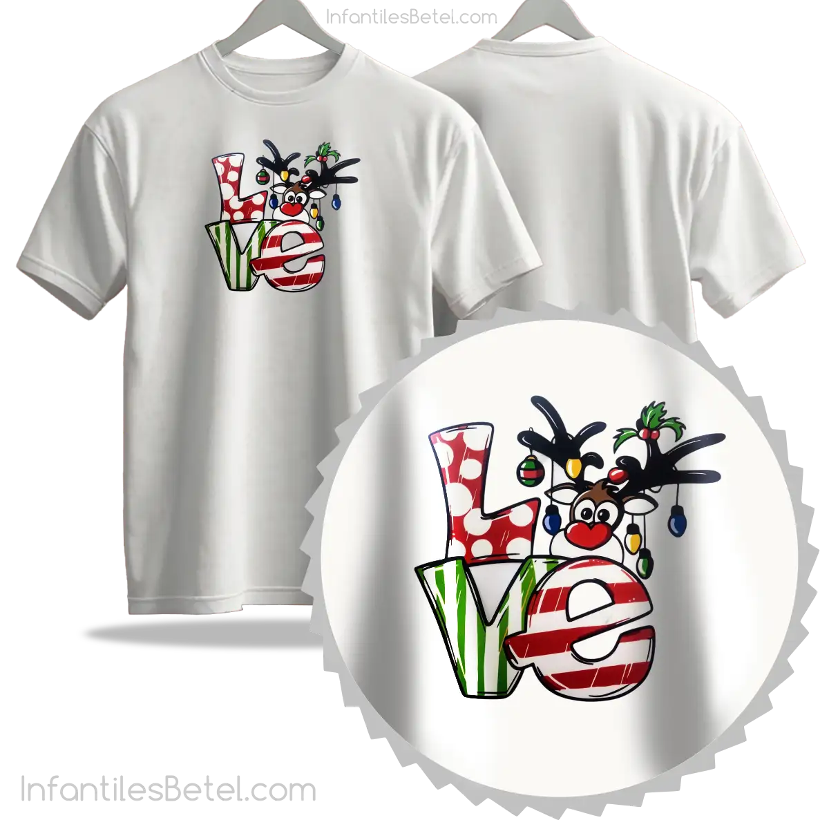Etiquetas: algodon, blanca, blanco, cuello redondo, manga corta, Navidad, Personalizado, Reno