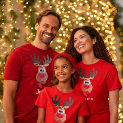 Etiquetas: cuello redondo, manga corta, Navidad, Personalizado, rojo
