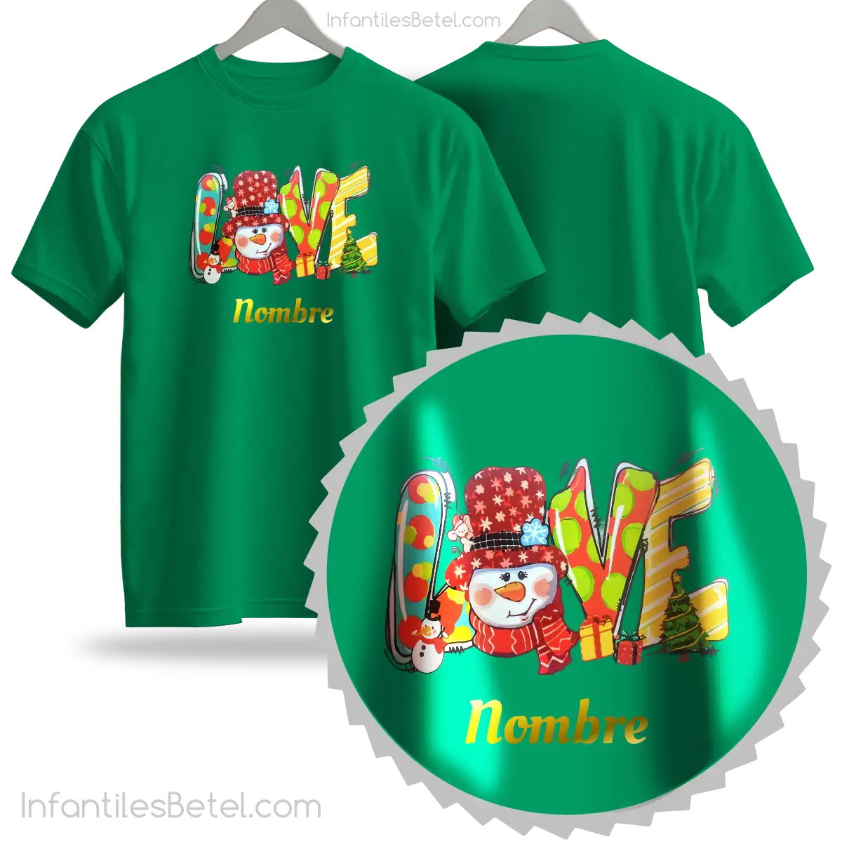 Etiquetas: cuello redondo, manga corta, Navidad, Personalizado, Snow, verde