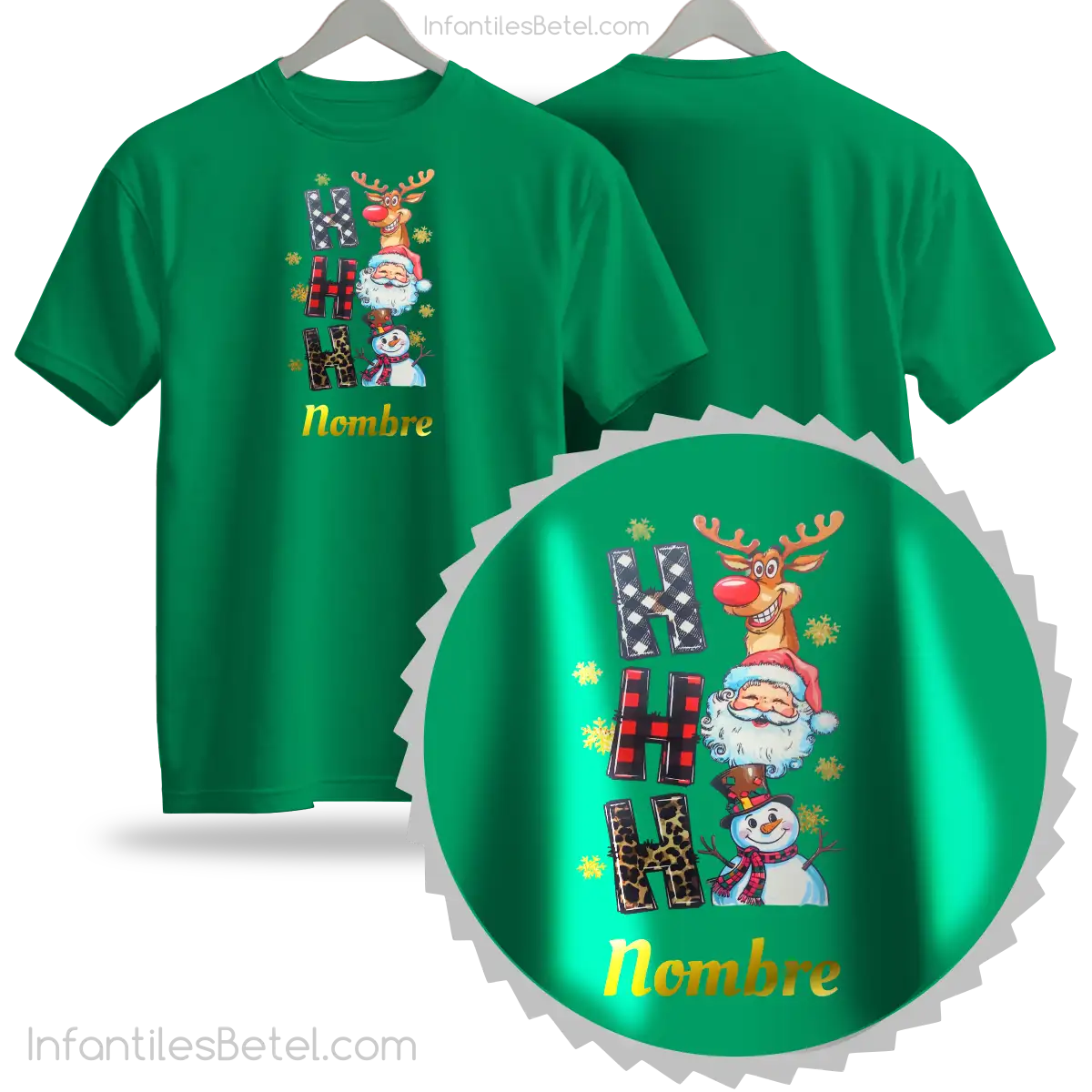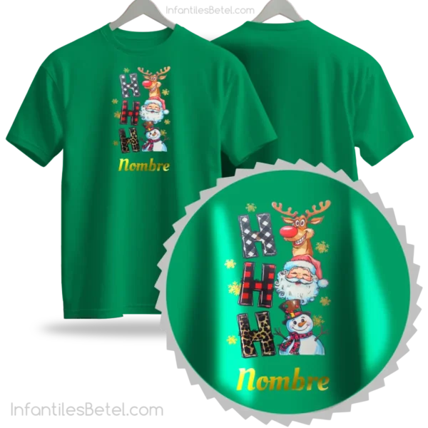 Etiquetas: cuello redondo, manga corta, Navidad, Noel, Personalizado, Reno, Snow, verde