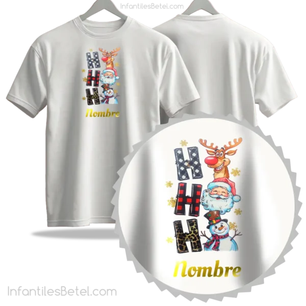 Etiquetas: algodon, blanca, blanco, cuello redondo, manga corta, Navidad, Noel, Personalizado, Reno, Snow